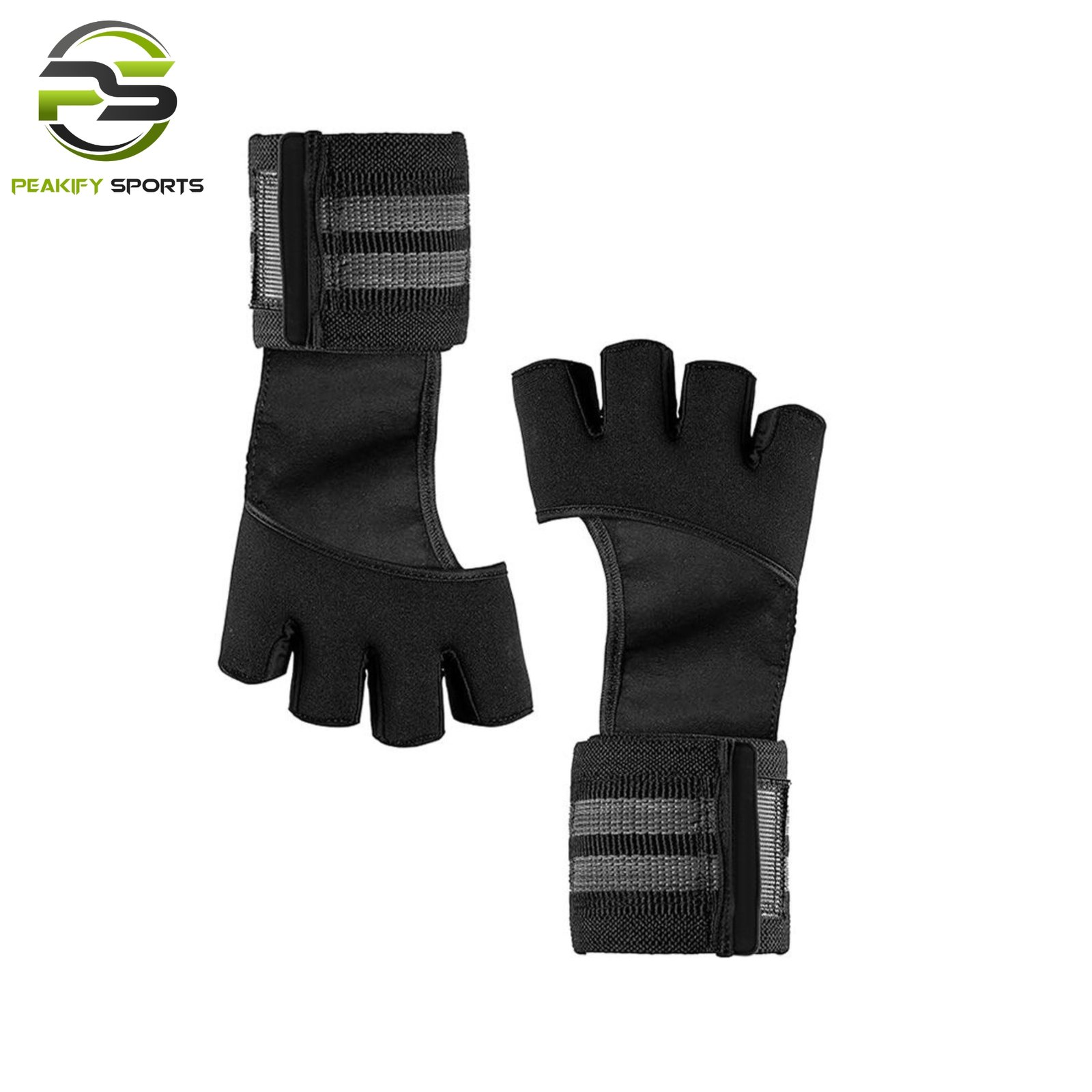 Professional-grade half-finger lifting gloves featuring integrated heavy-duty wrist wraps and a high-durability palm shield. Manufactured by Peakify Sports to provide the ultimate fusion of joint stability and hand dexterity for elite athletes.
