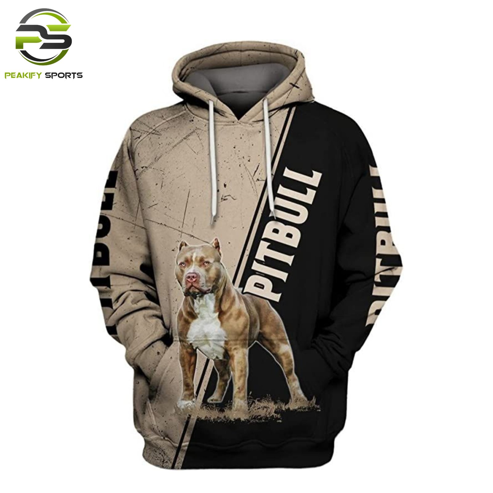 Aggressive “Guardian” Pitbull Edition pullover featuring a striking split-tone tan and black design with high-definition graphic prints. Manufactured by Peaikfy Sports for those who demand strength, durability, and a bold street-ready aesthetic.