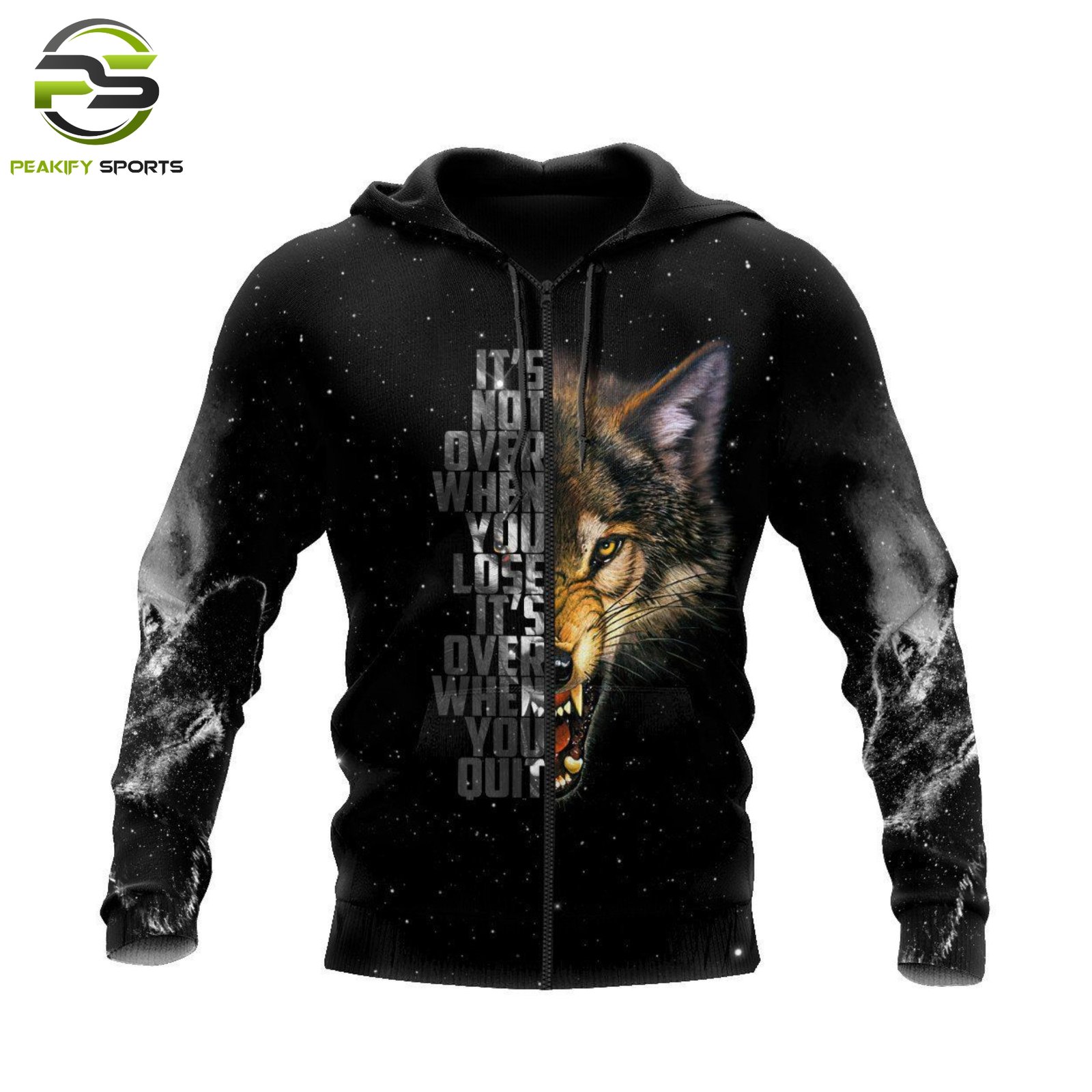 Peakify "Relentless Spirit" Alpha Wolf Zip-Up Performance HoodiePeakify “Relentless Spirit” Alpha Wolf Zip-Up Performance Hoodie
